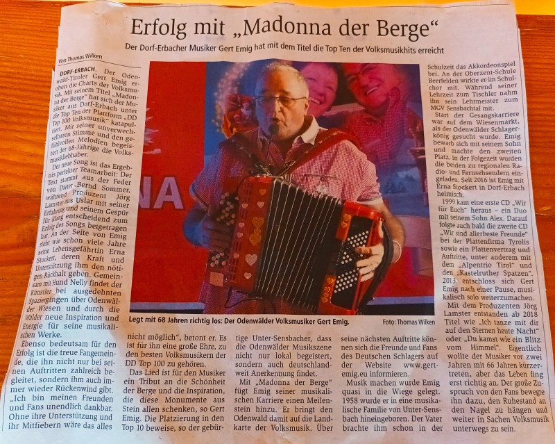 Großer Erfolg mit " Madonna der Berge " Pressebericht im Odenwälder Echo