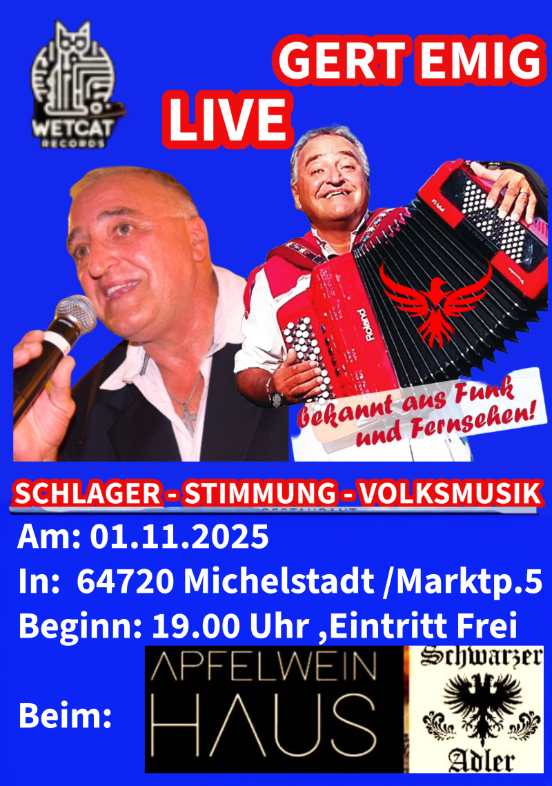 Gert Emig Live am 06.12.2025 Nikolaus Konzert zum Weihnachtsmarkt Michelstadt um 18.00 Uhr
