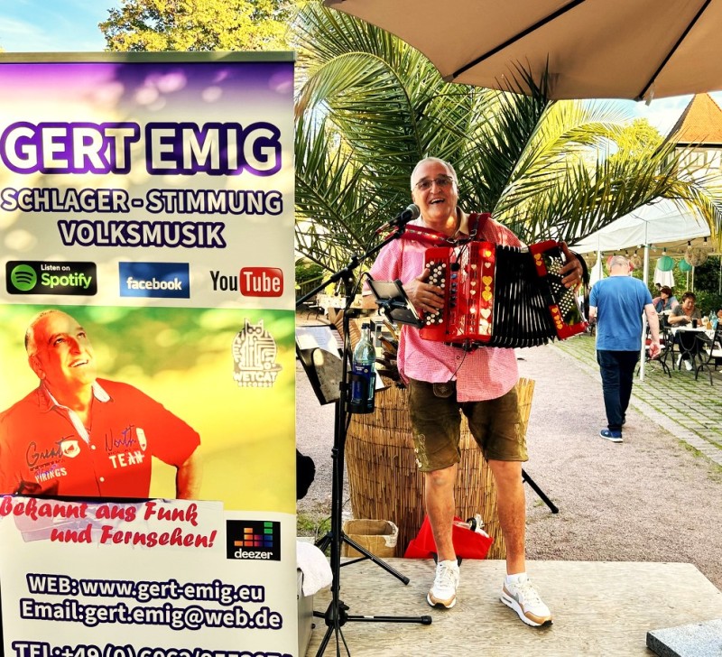 Stimmungsauftritt im Biergarten vom Grünen Baum mit Gert Emig Musiker und Sänger aus dem ODW.